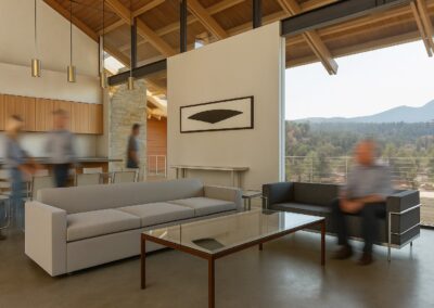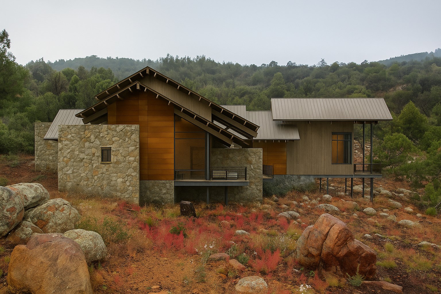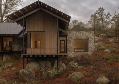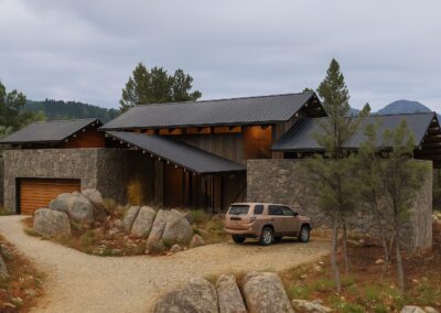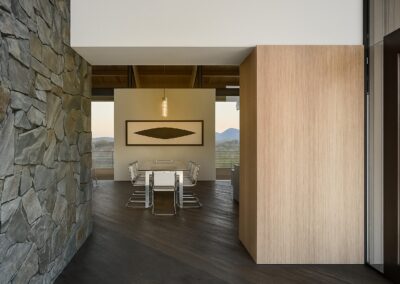 Situated above a seasonal wash in Prescott with views of Thumb-Butte, the owners wanted a home with 2 master-suites that would have acoustic independence. Our solution was to seat these distinct volumes on either side of the wash and create an opportunity for them experience the views and the ravine daily as they migrate between the two.