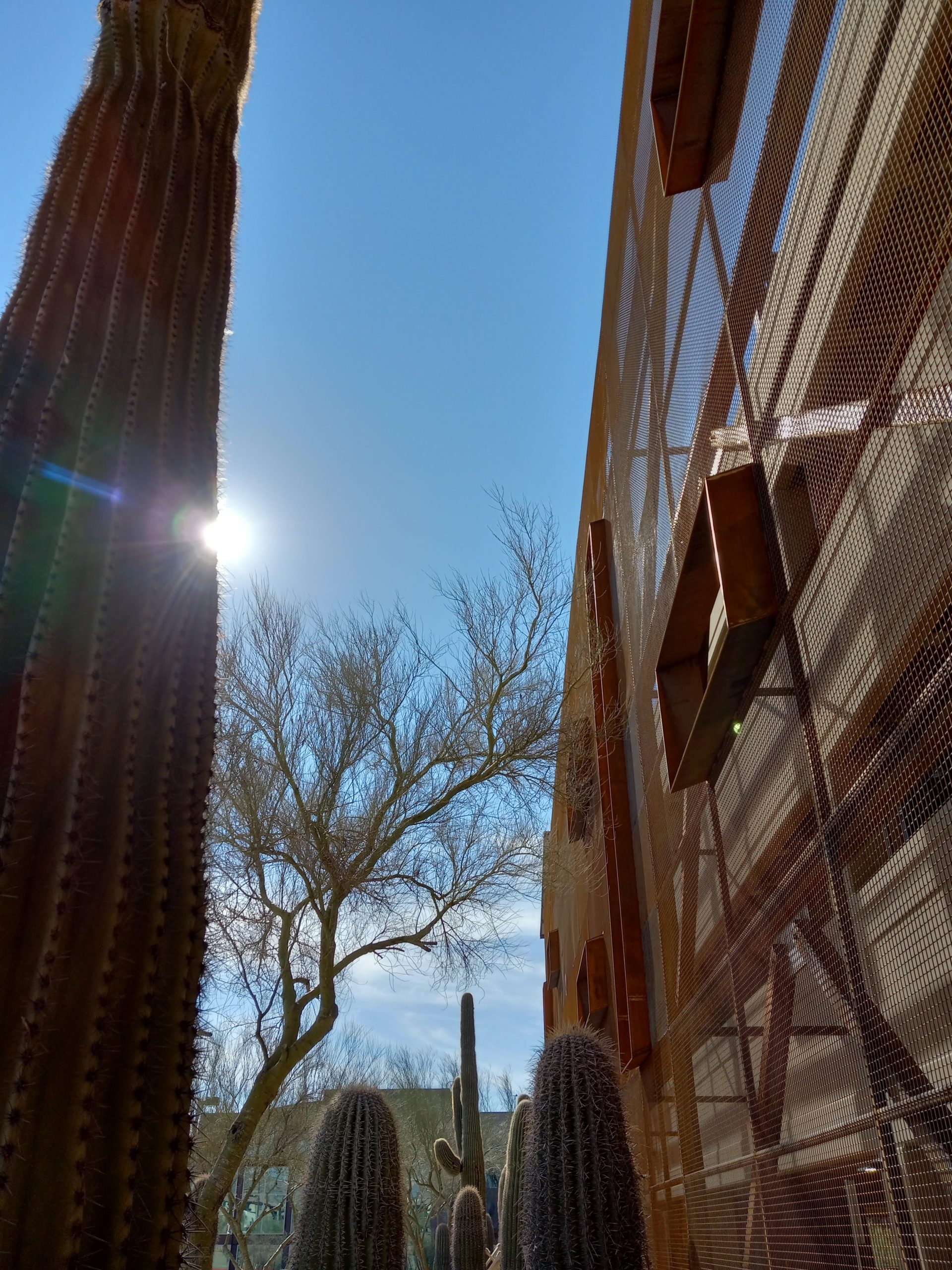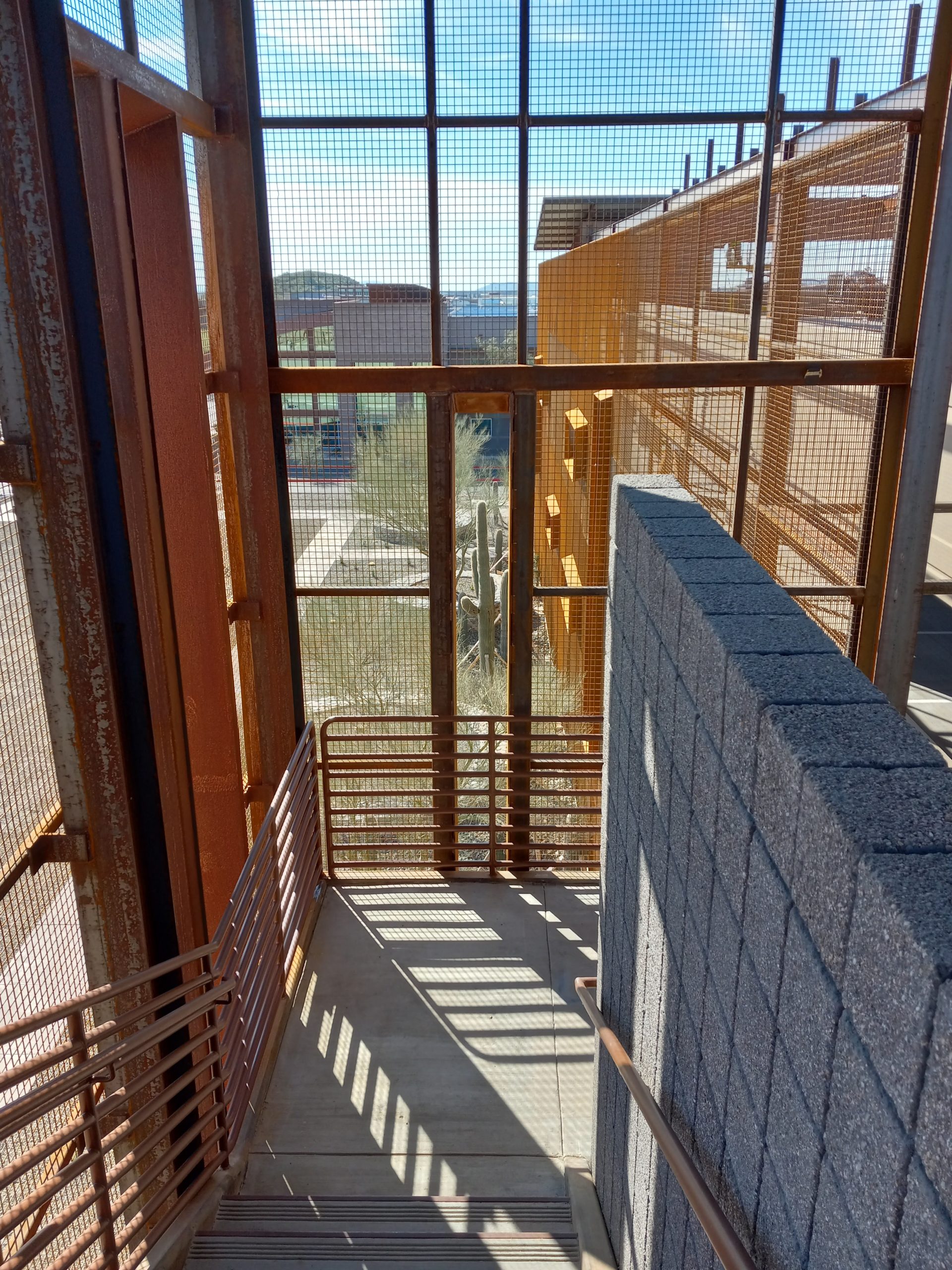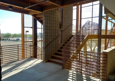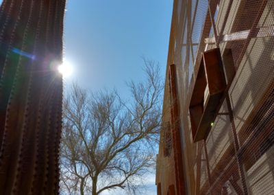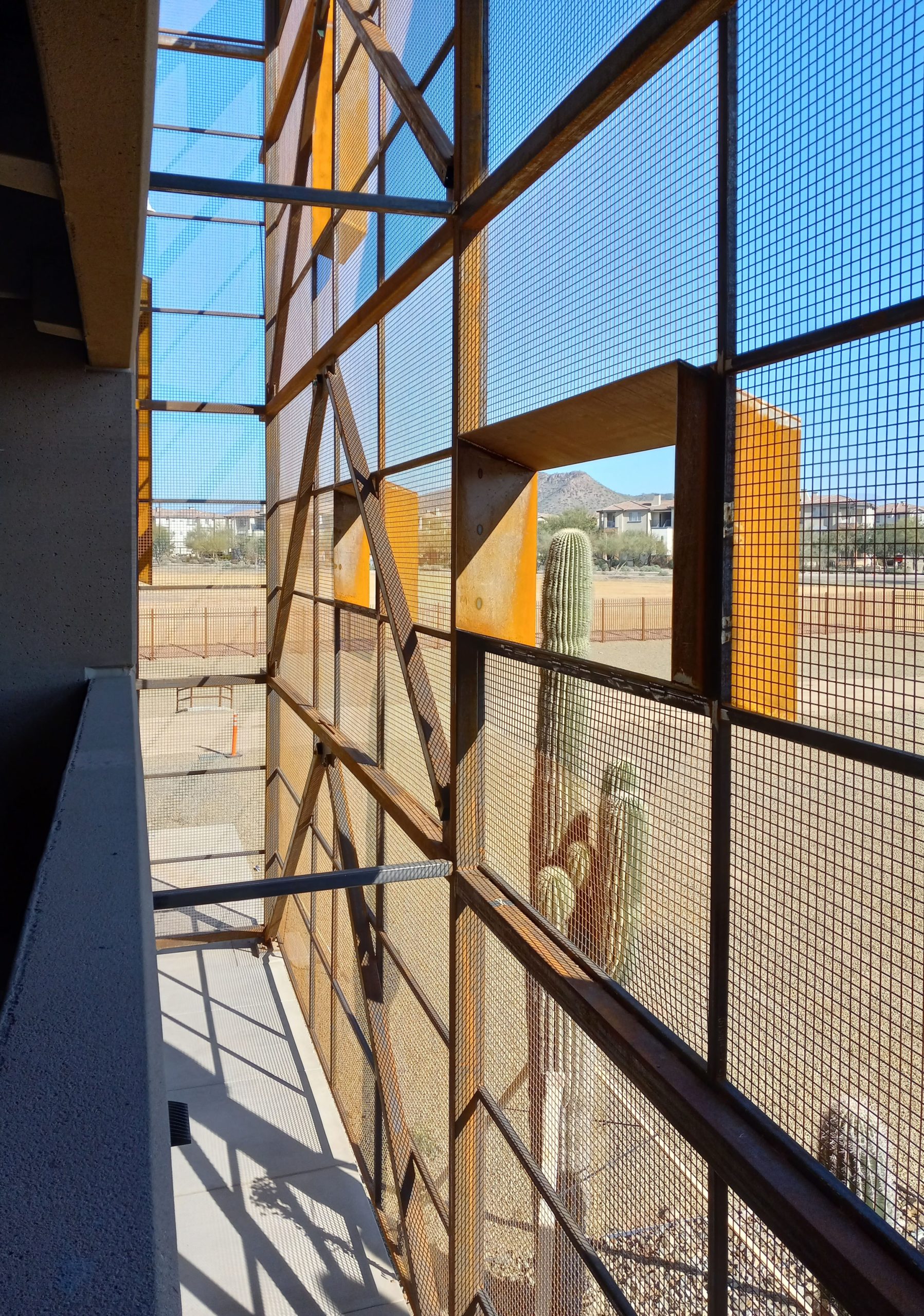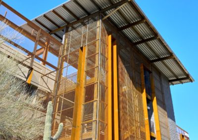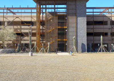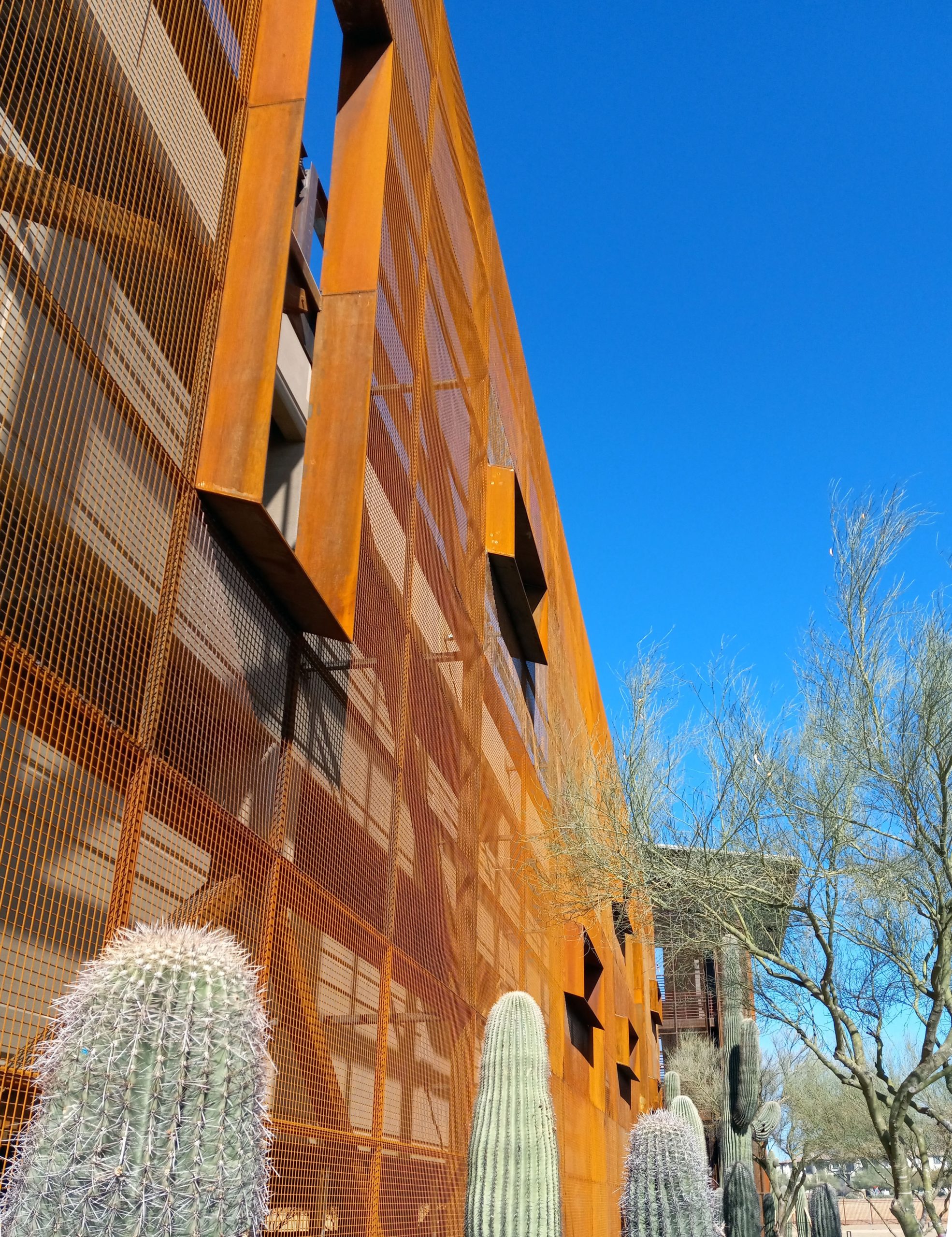 Located in the heart of the Sonoran Desert, a chief end for this project was to create an outdoor refuge where associates could traverse and engage in a setting that acknowledged and enjoyed the natural beauty of the desert. We were commissioned to develop 3 new structures; a 4-story Parking Garage, Training Center, and Administration Building, and as a result an outdoor plaza would emerge in the space between. Stair-towers and the entire eastern face of the garage were clad in a Corten steel-mesh creating opportunities for vegetation to arise and establish this haven in the desert.